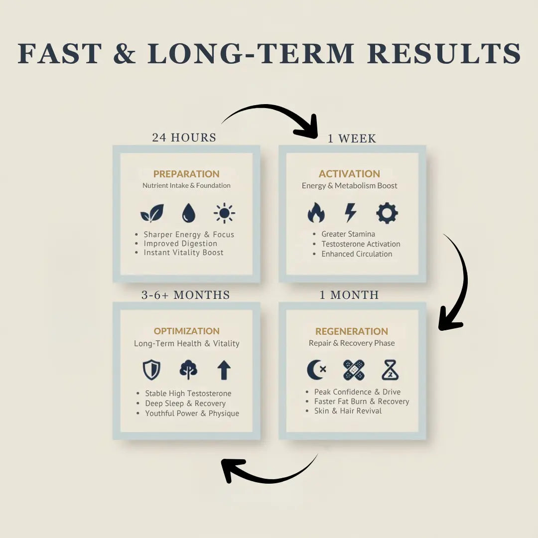 Over time, your body restores its vitality, strength, and drive : naturally, without chemicals or synthetic boosters.